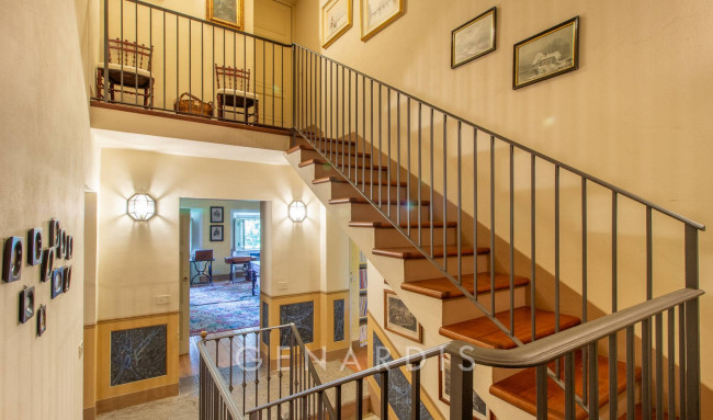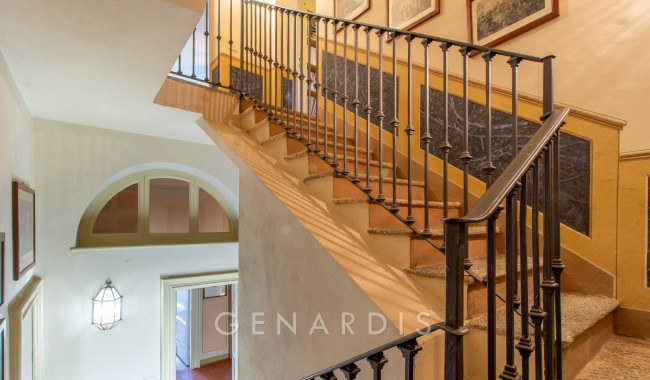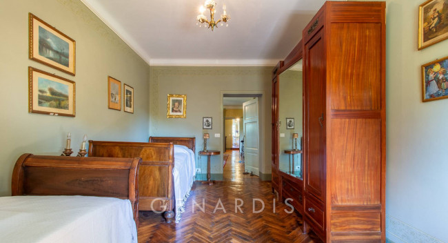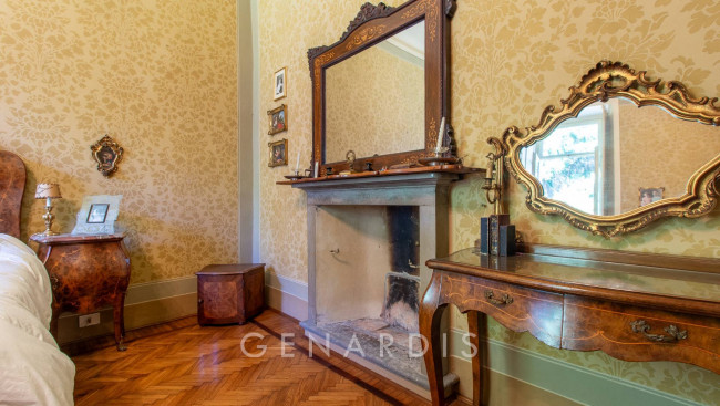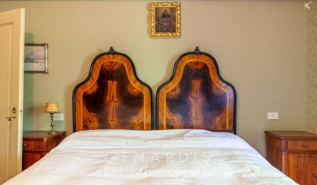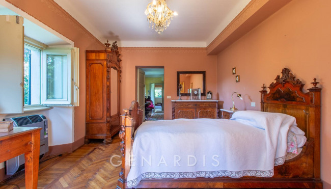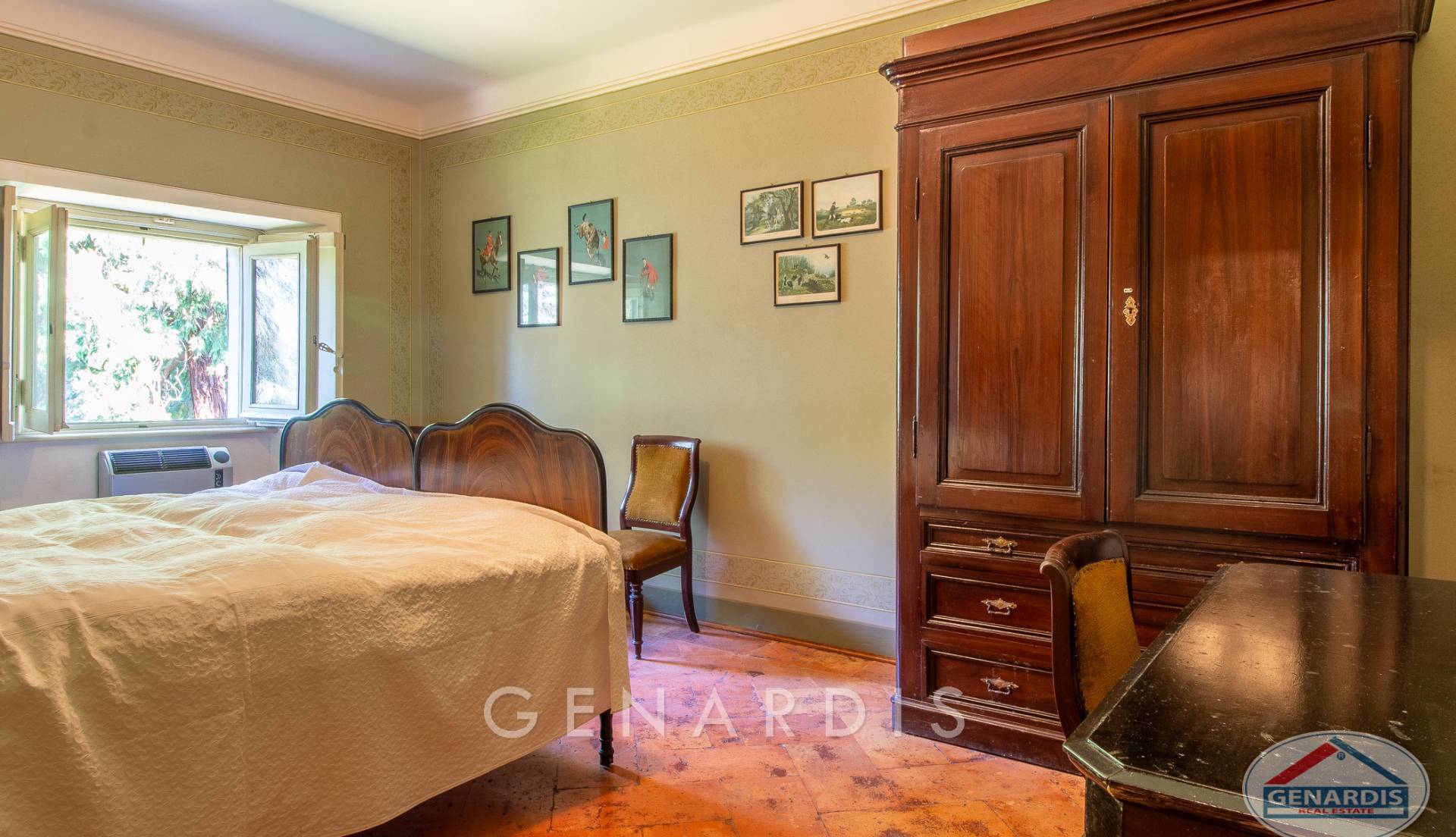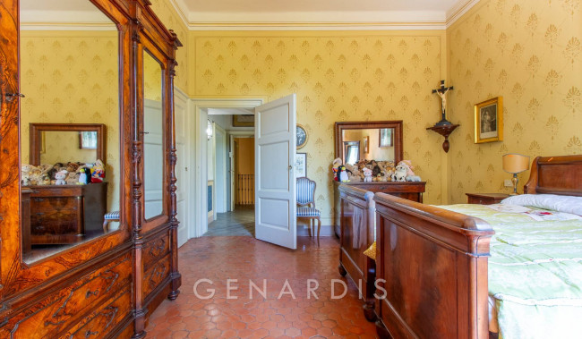 Cinque camere da letto, di cui due con camino, si distribuiscono attorno a un disimpegno centrale di grande impatto scenico, servite da tre bagni. Un elegante balcone panoramico regala scorci sul parco e sulle colline circostanti.