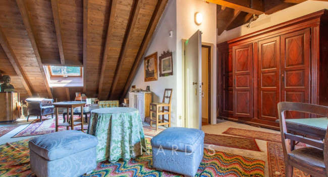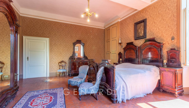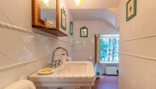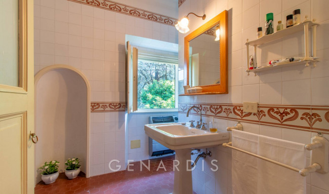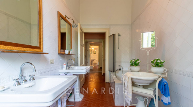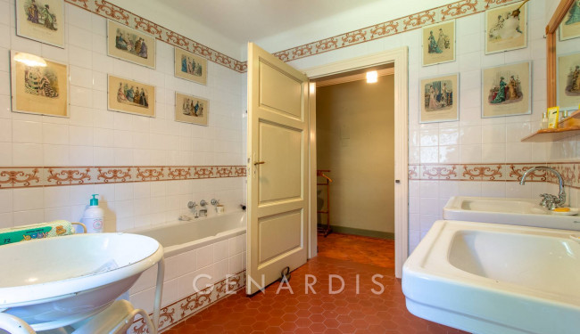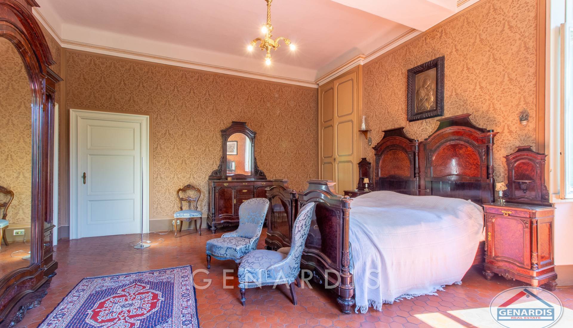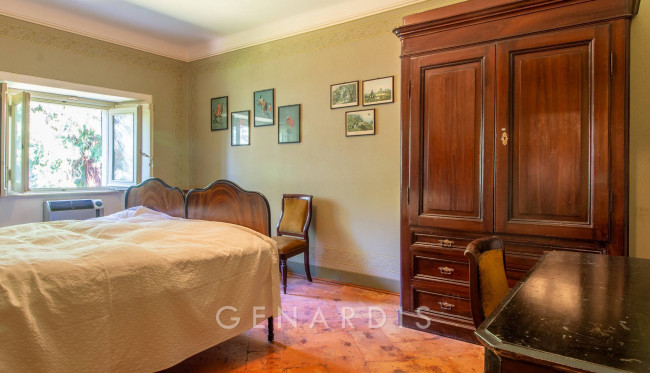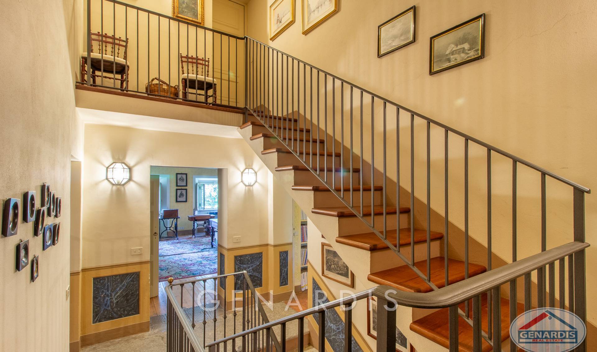 Cinque camere da letto, di cui due con camino, si distribuiscono attorno a un disimpegno centrale di grande impatto scenico, servite da tre bagni. Un elegante balcone panoramico regala scorci sul parco e sulle colline circostanti.