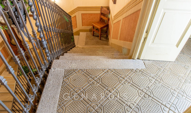Distribuita su tre livelli fuori terra, oltre a una splendida mansarda, la proprietà offre una superficie interna di circa 950 mq, con spazi ampi e versatili, adatti a una residenza privata di rappresentanza o a una dimora di famiglia.