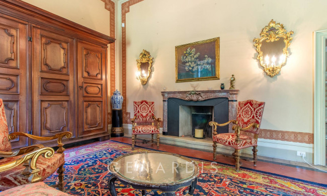 La proprietà, su gentile disponibilità dei proprietari, può essere venduta con parte degli arredi storici che valorizzano l’atmosfera della villa.
